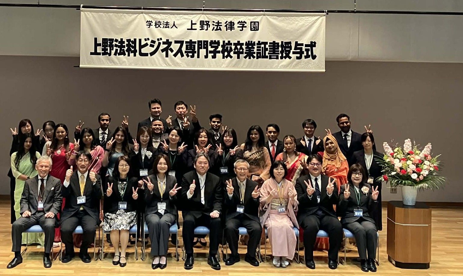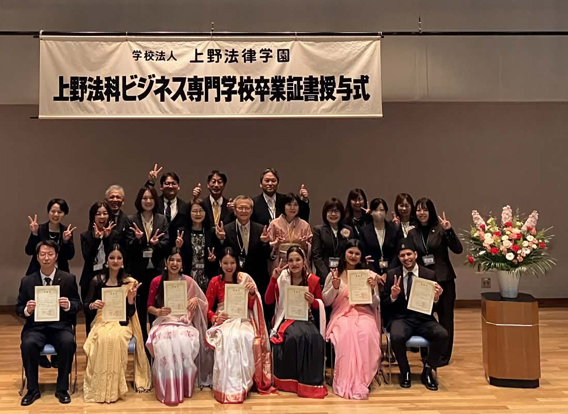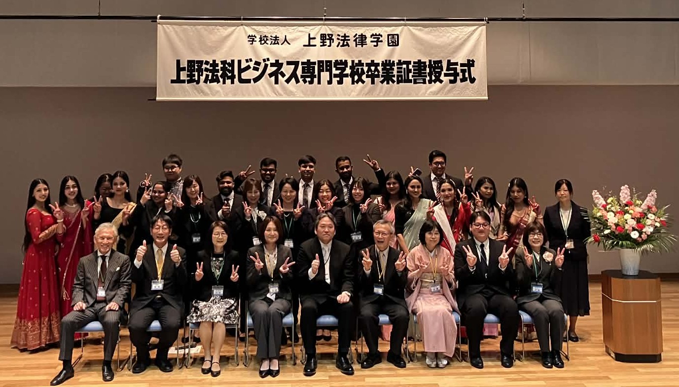 本日、上野法科ビジネス専門学校日本語学科では卒業式を行い、2年コース、1年6か月コース合わせて74名の学生が無事卒業いたしました。 卒業生の皆さん、自分の選んだ新しい道へと自信を持って進んで行ってください。 これからも皆さんを応援しています。頑張ってください。